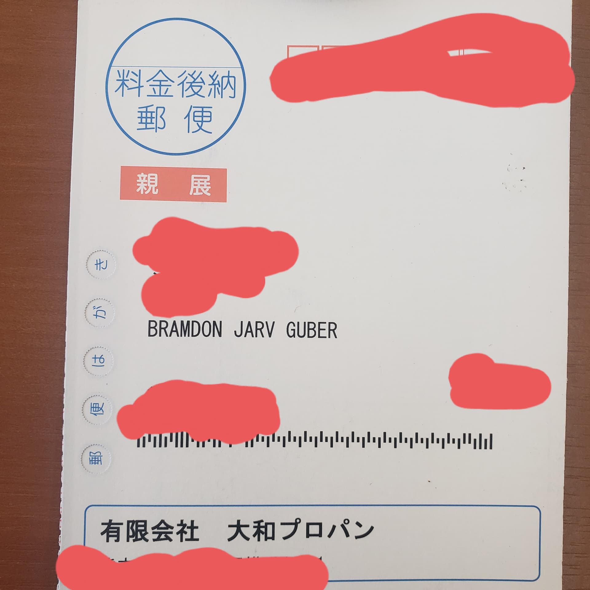 To explain, most documents to fill out in Japan don’t have room for a full English name including middle name, so me squeezing my name into that small box resulted in it looking like Bramdon jarv guber
